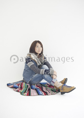 膝を抱えて座る代日本人女性 の写真素材 イラスト素材 アマナイメージズ